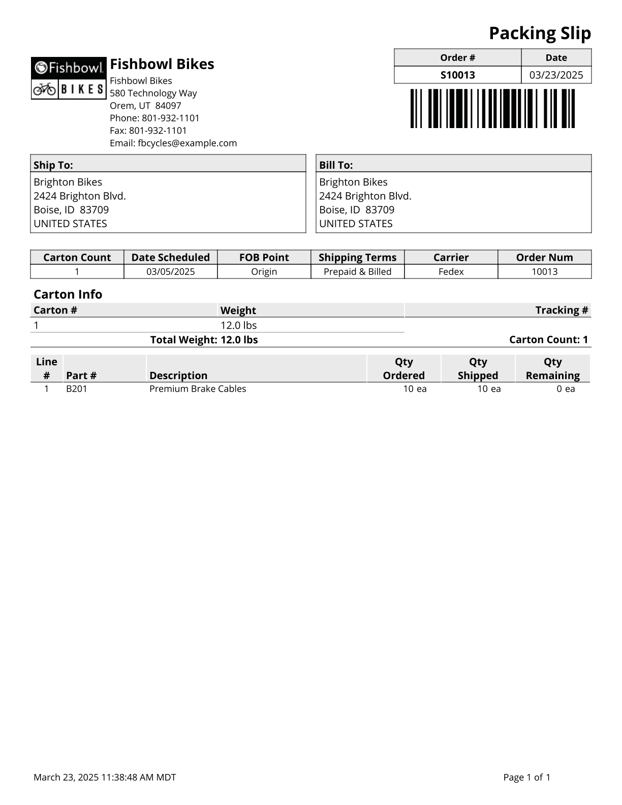 Packing List - Packing List for a selected order. Selecting Standard or By Location layouts will include backorder items.