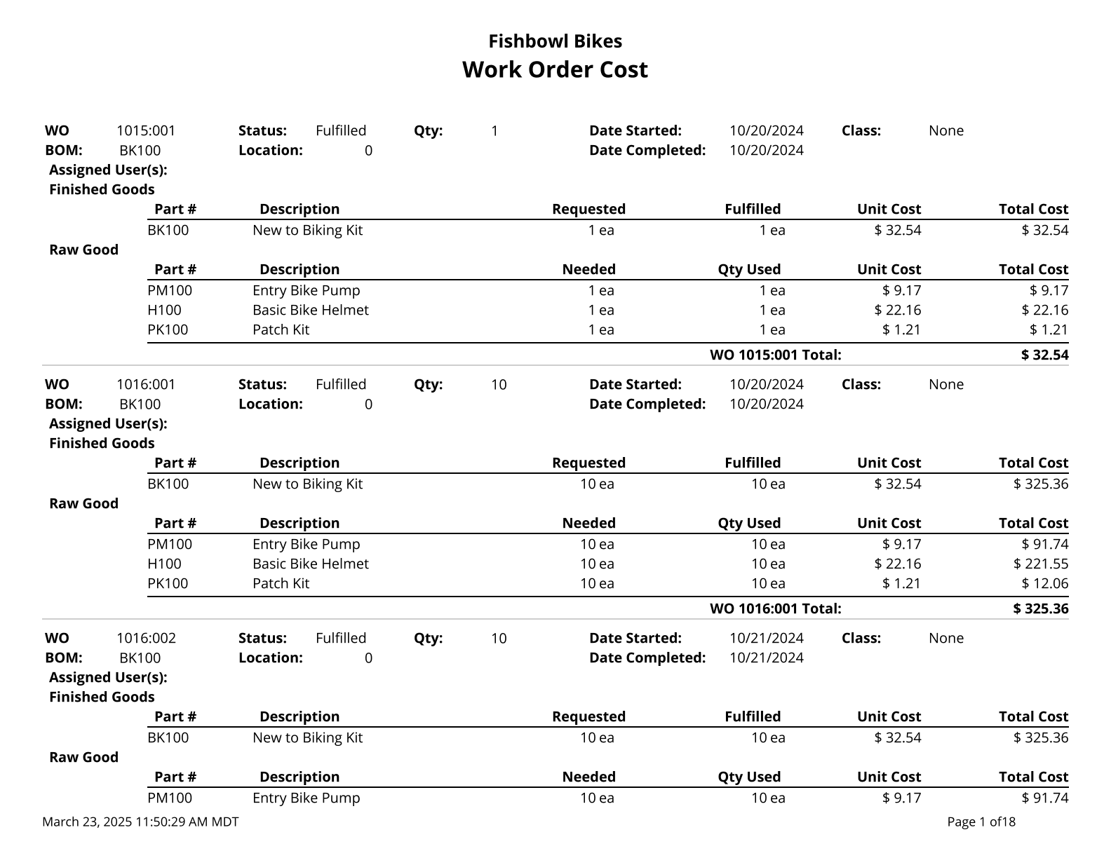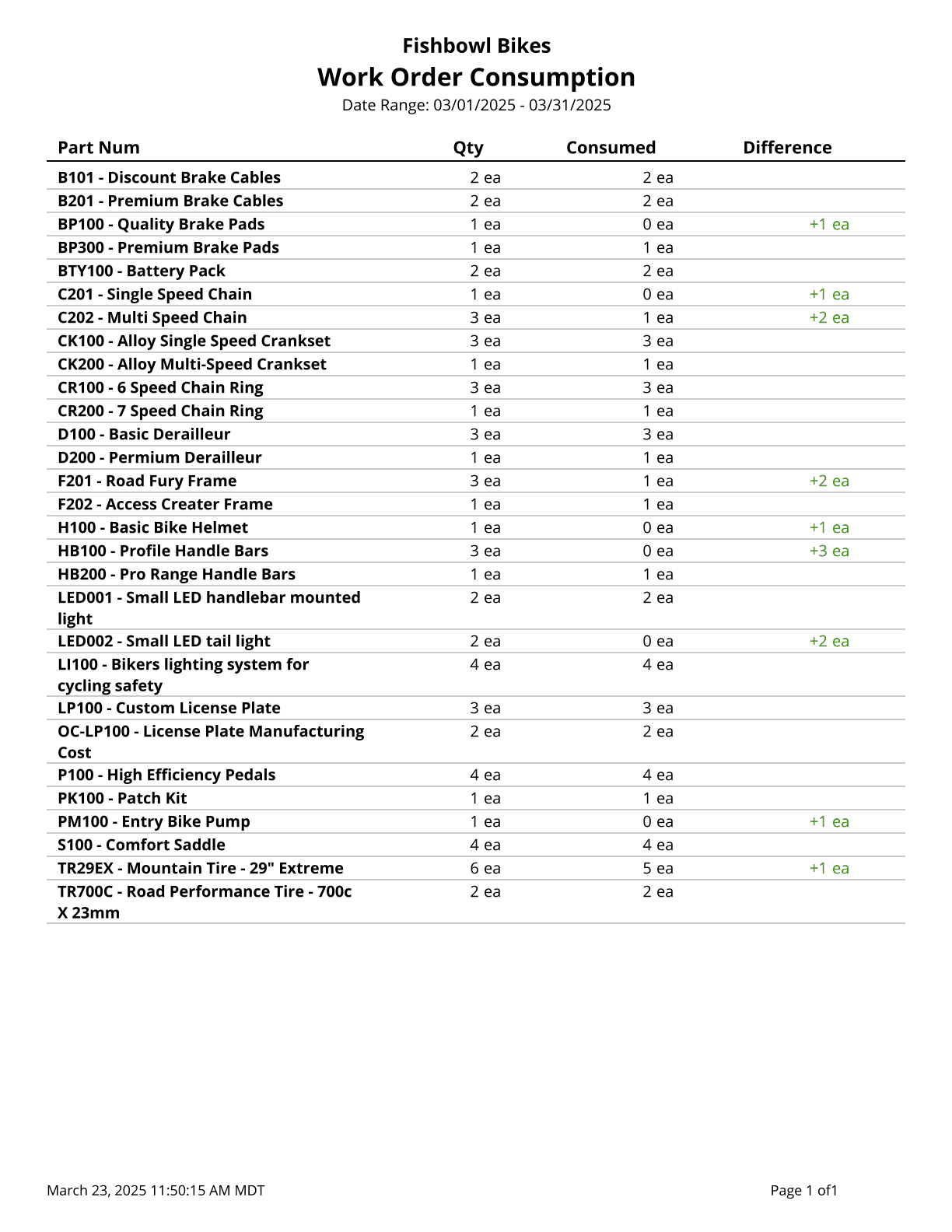 Work Order Consumption - Prints out the consumption of fulfilled work orders.