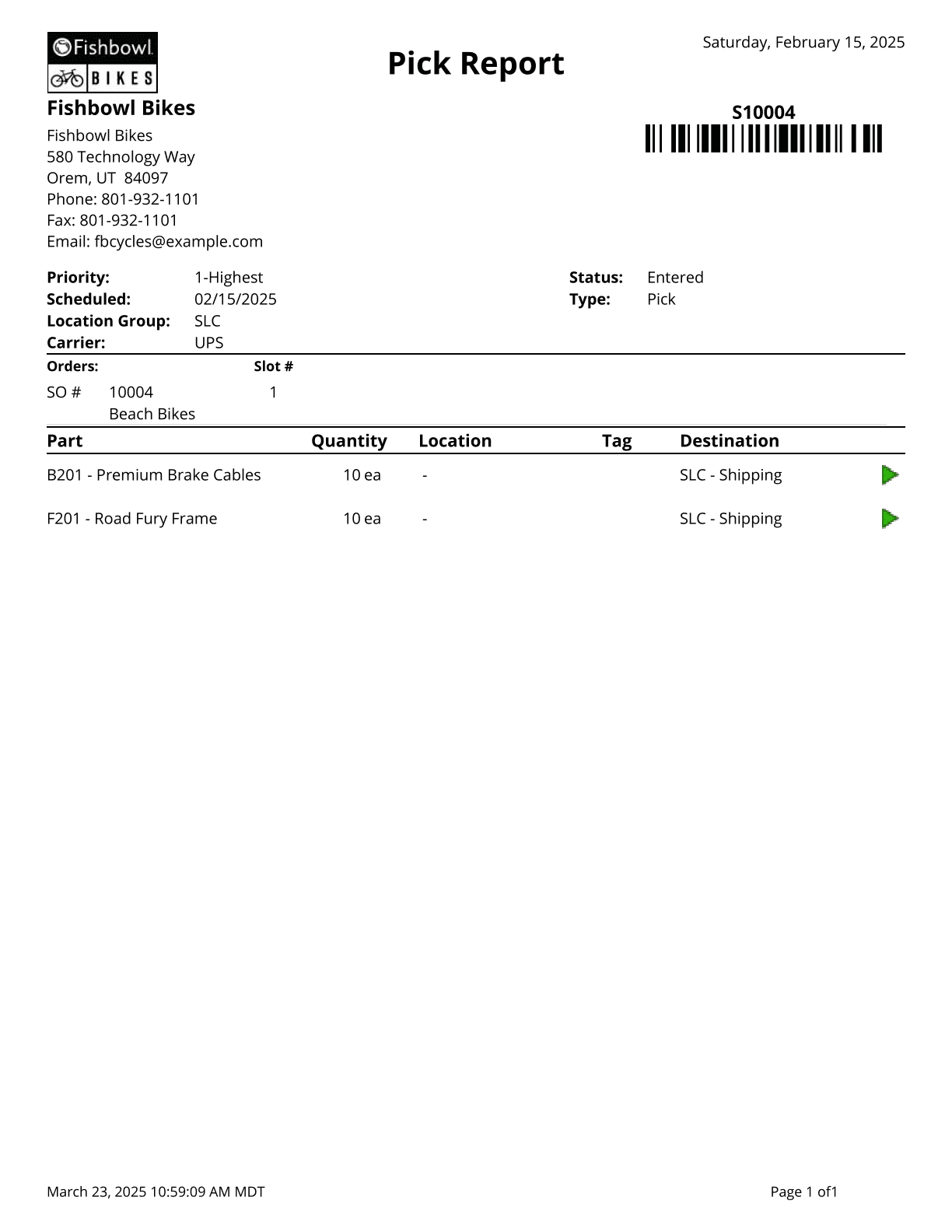 Pick Ticket - A list of Parts to Pick, where to get them, and where to put them after picking.