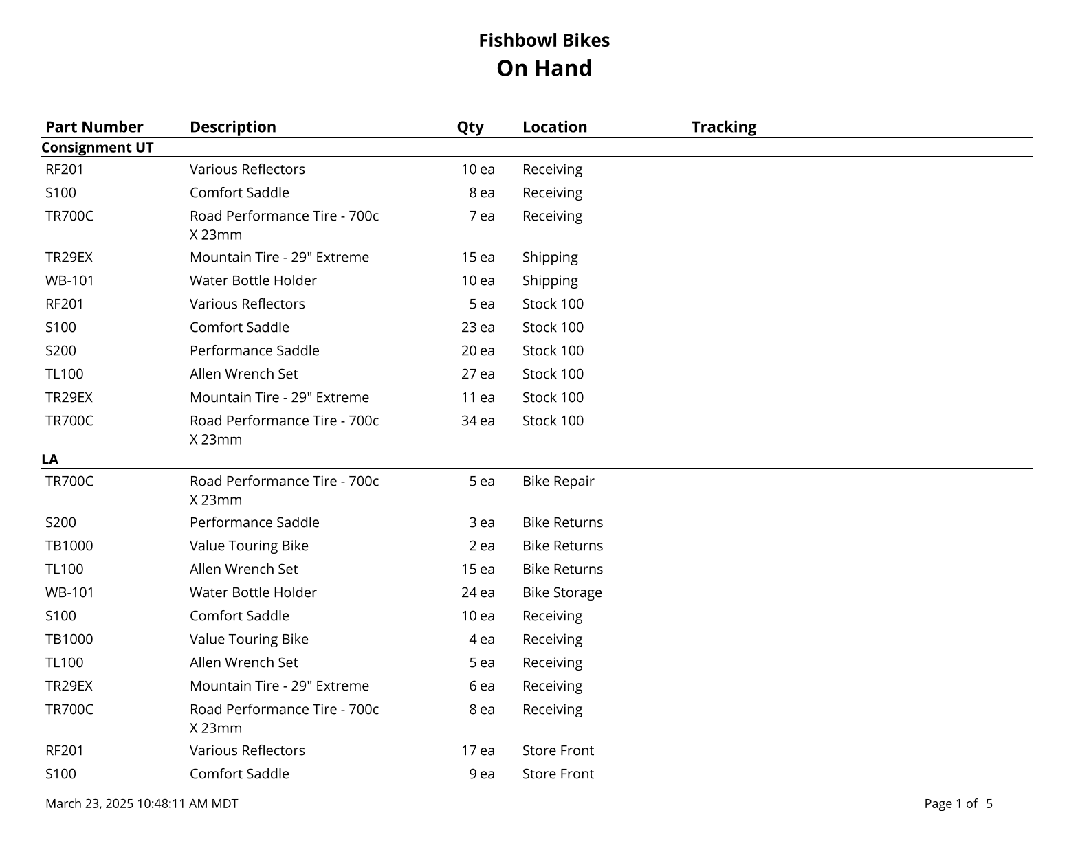 On Hand - Displays a list of parts with the current quantity on hand. *Does not filter for serial numbers.
