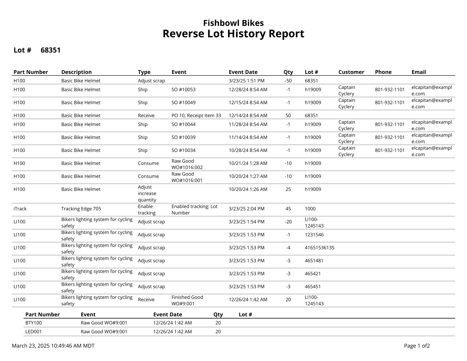 Reverse Lot History - Traces the history of a lot number from the present time to when it entered the system.