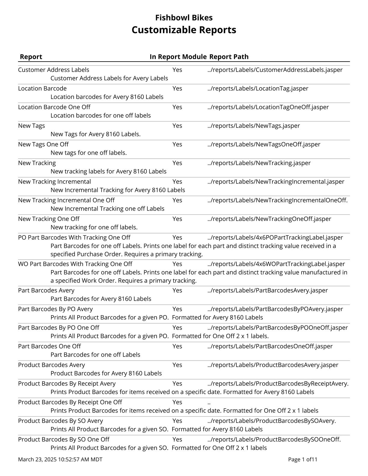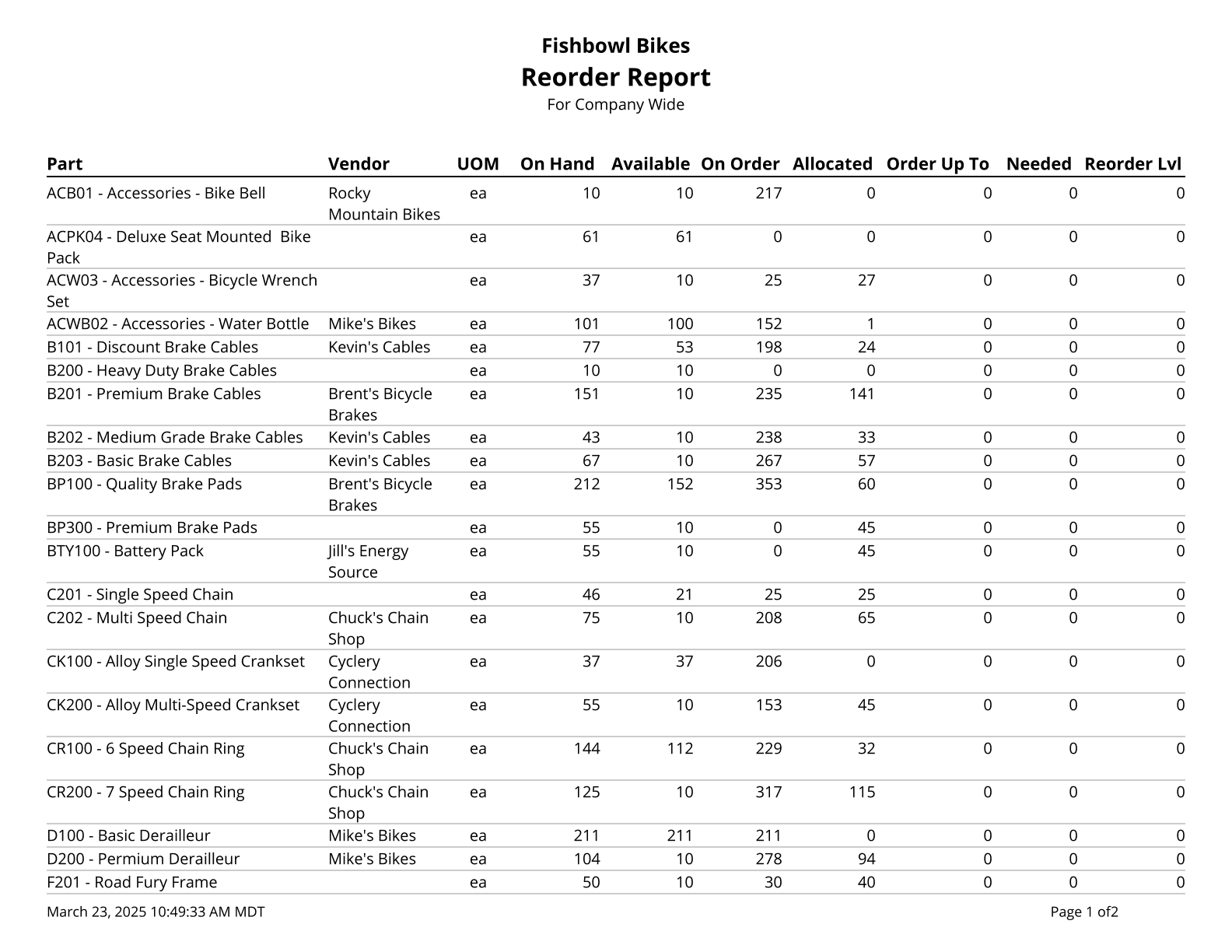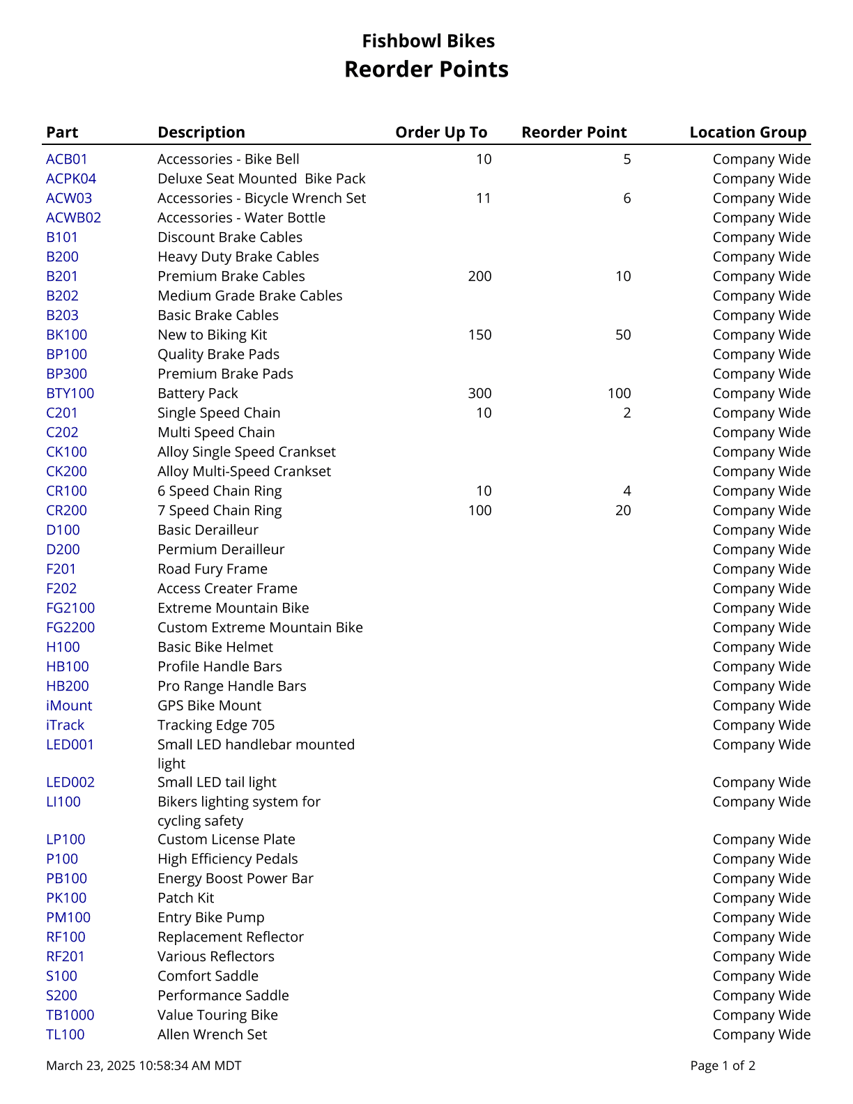 Reorder Report - Prints a list of parts below reorder tolerance.