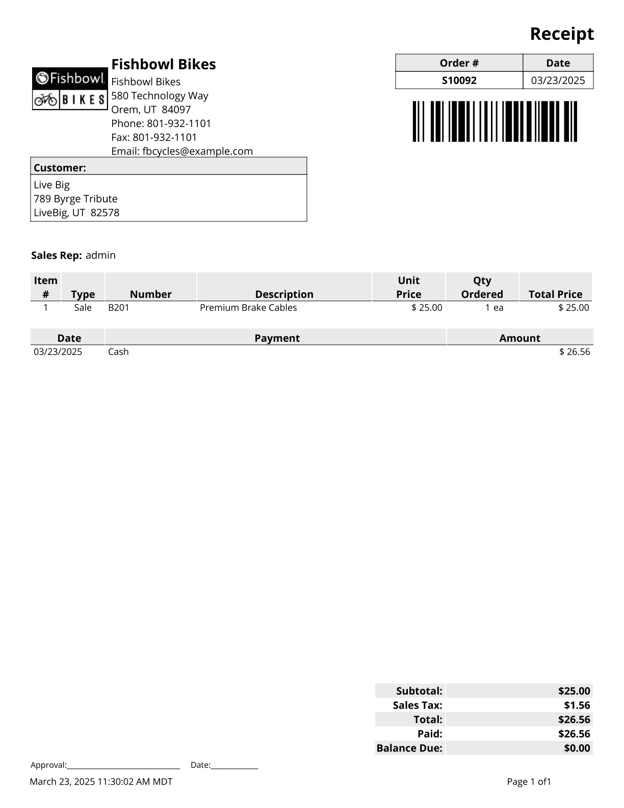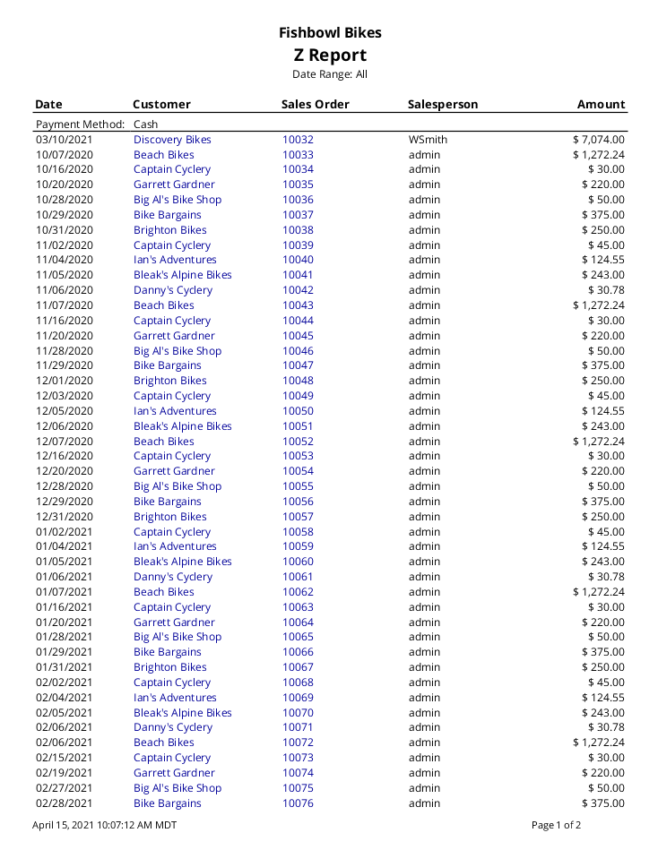 Z Report - Prints all payments posted in Fishbowl for the date range specified.