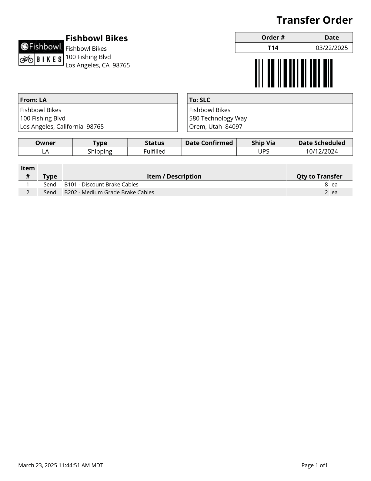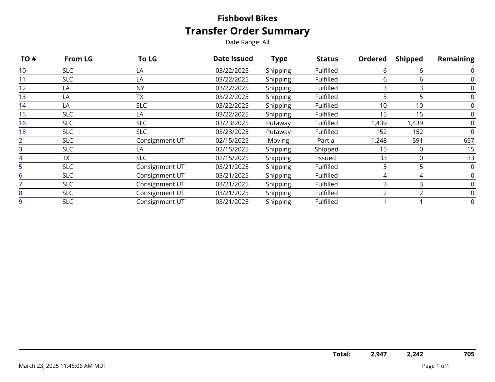 Transfer Order Report - Basic Report for Transfer Orders.