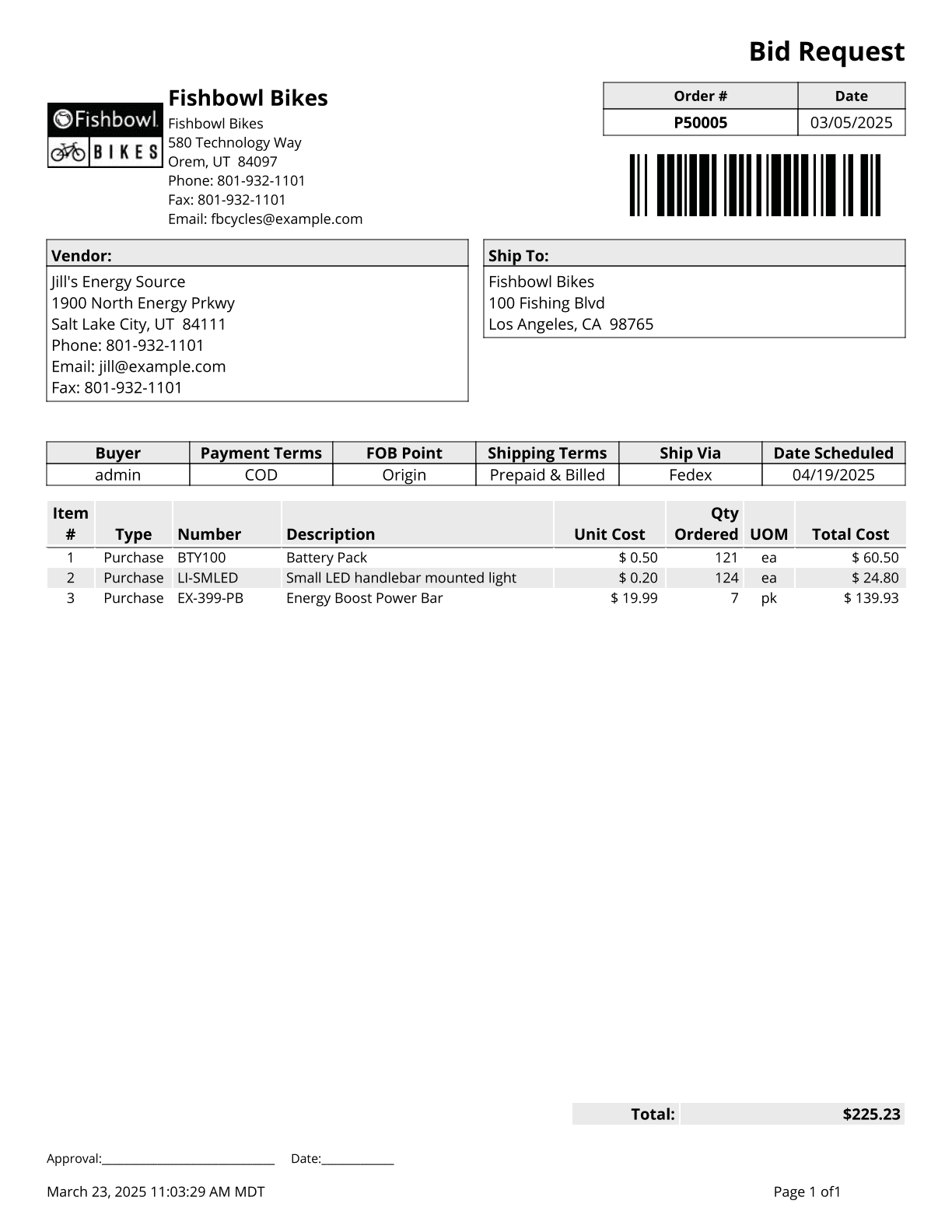 Vendor Backorder Report - Prints a list of parts where the scheduled fulfillment date has passed. Filtered by vendor, part, and/or date range. Grouped by vendor, part, or PO number.