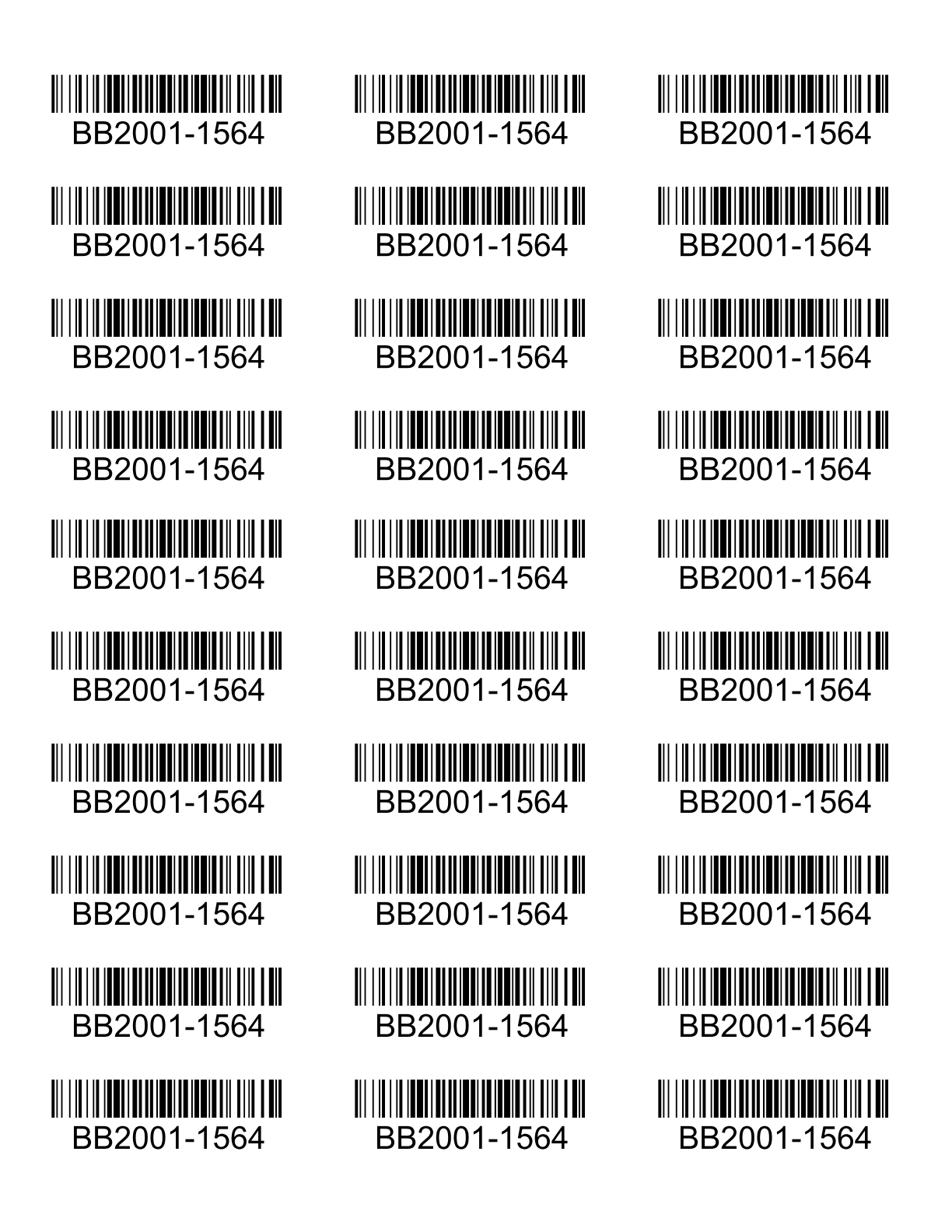 Single Part Barcodes Avery - Part barcodes (Code 128) for Avery 8160 Labels.