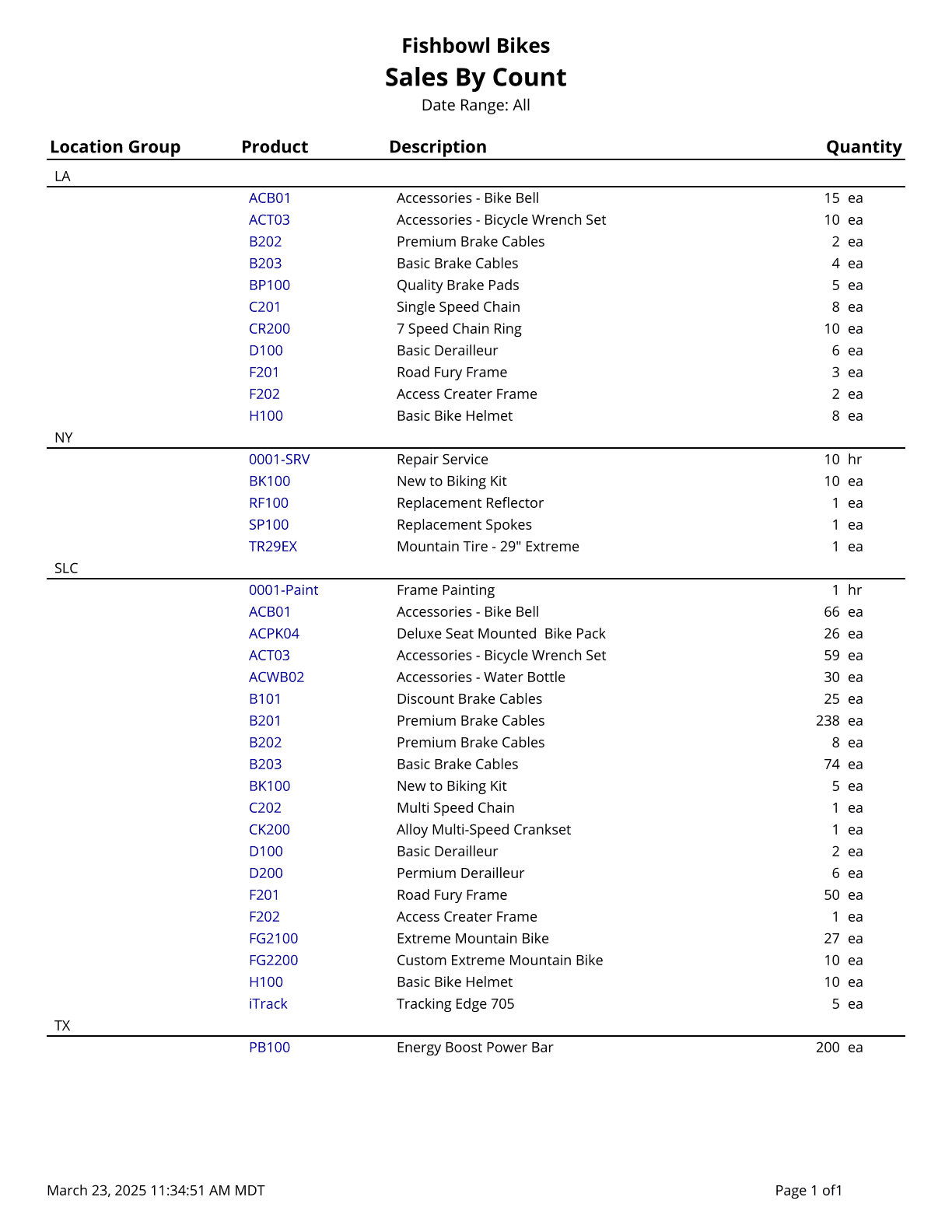 Sales By Count - Prints a list of sales by count for orders that have items shipped during the date range specified.