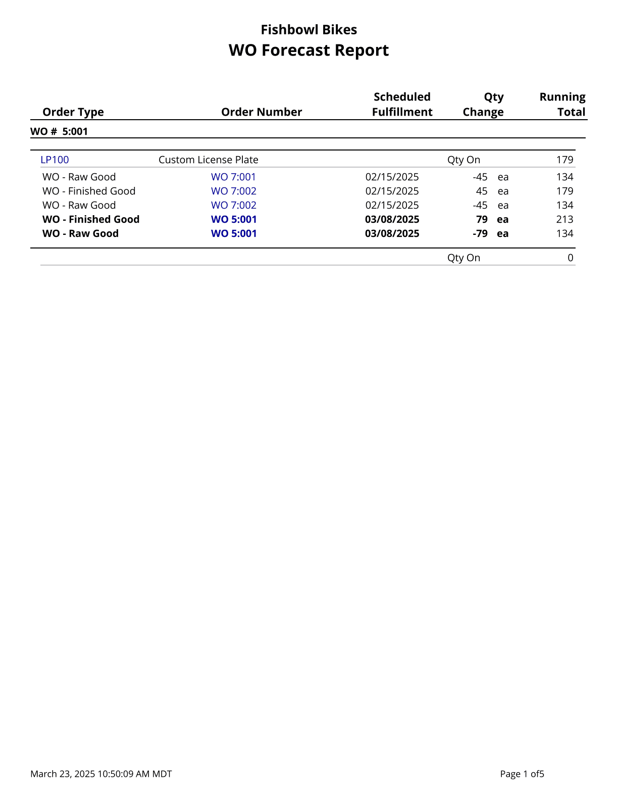Work Order Forecast Report - Calculates a running total of allocated parts on orders separated out by work orders.