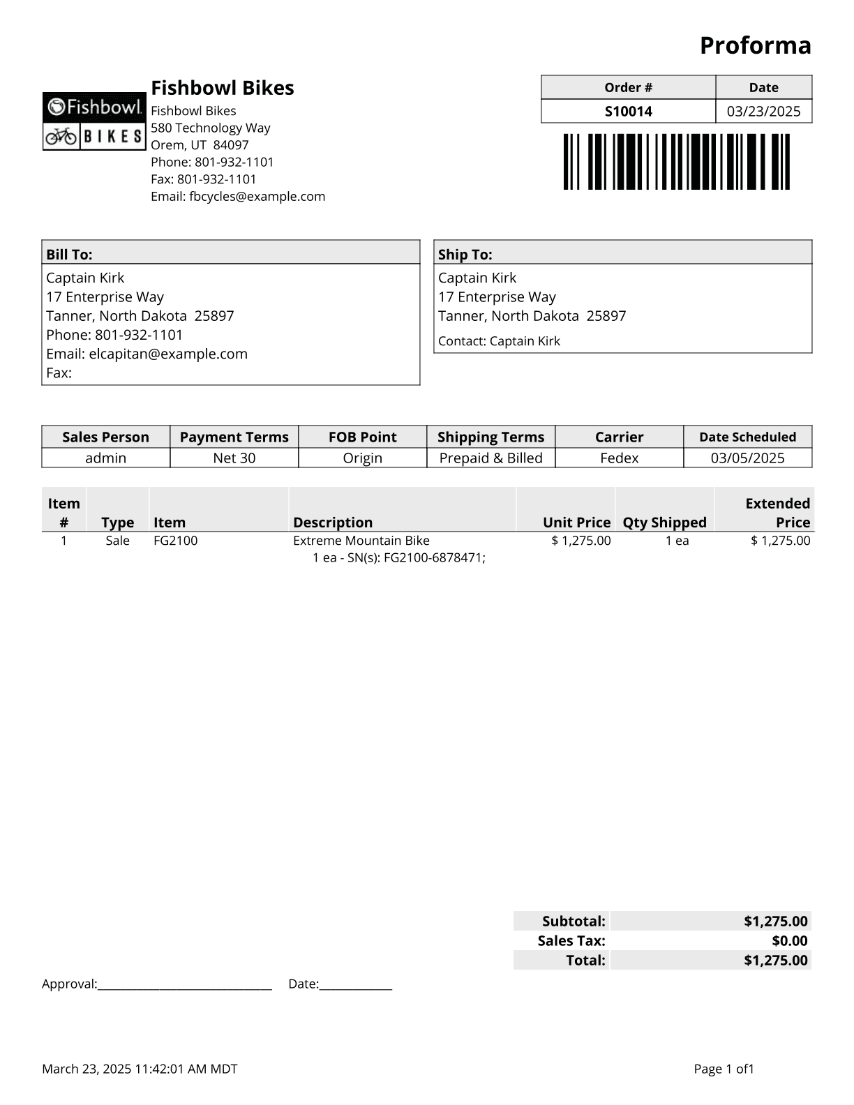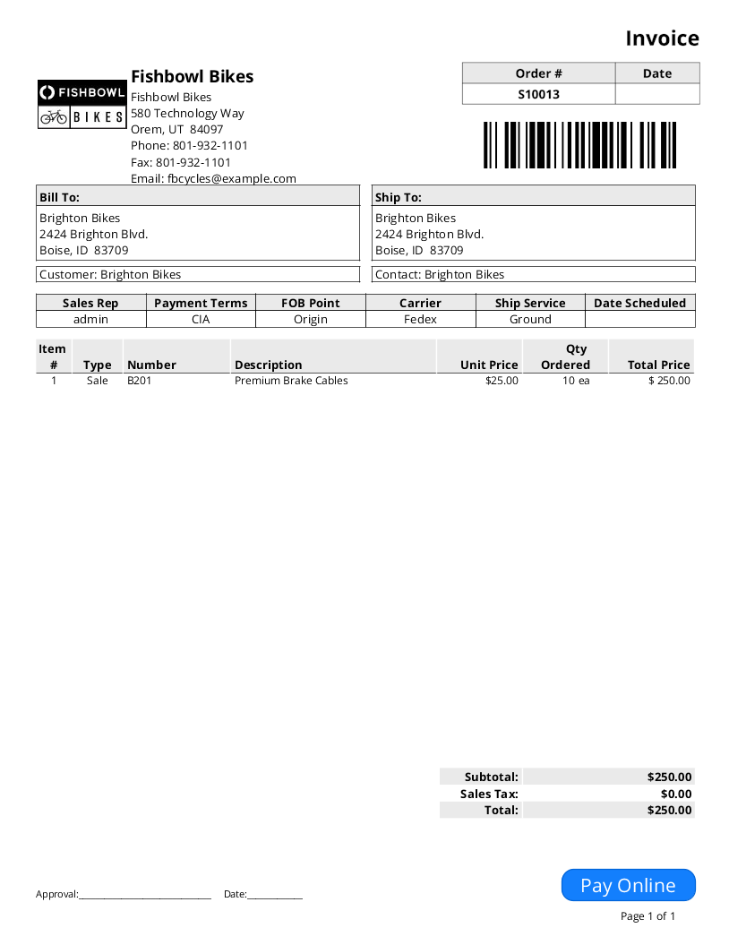 Shipping Invoice - Displays shipped products and their prices. Also includes other items on the order, such as discounts, tax rates, miscellaneous items, and subtotals.