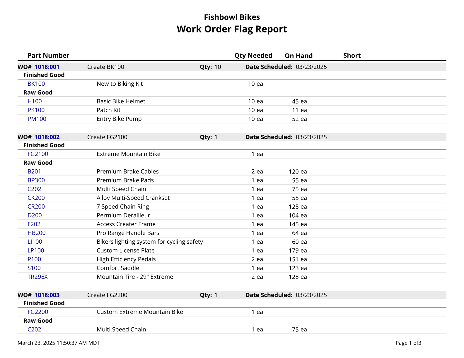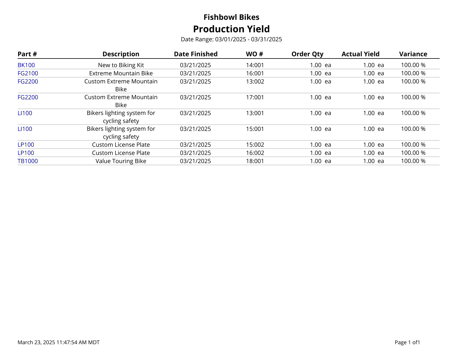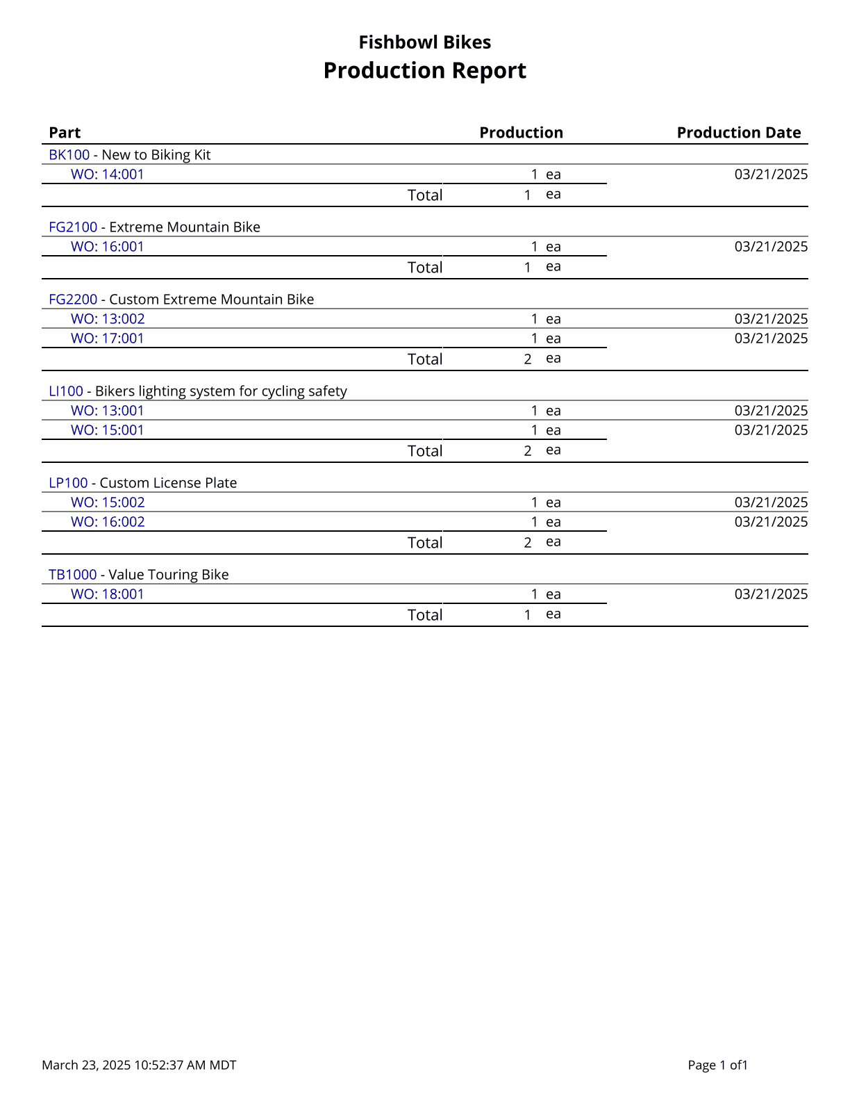 Production Report - Shows the parts built in completed work orders.