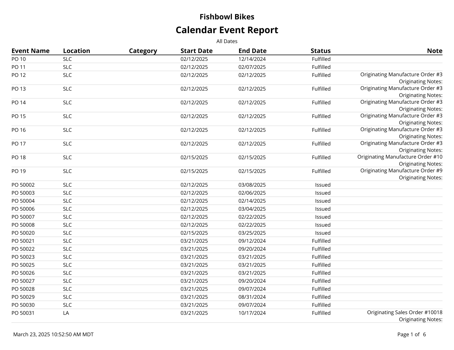 Calendar Report - Report will show all calendar events for a specified date range.