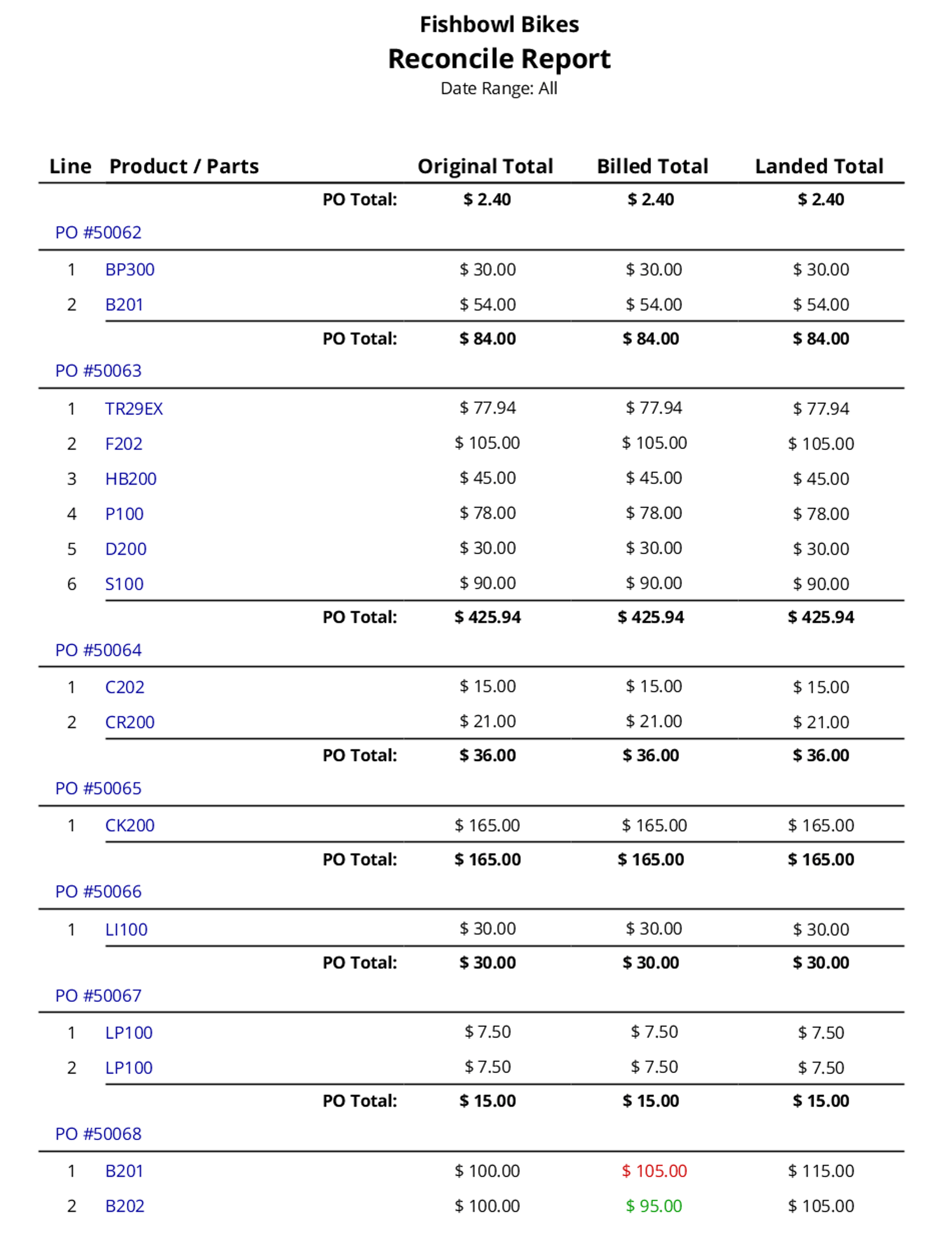 Reconcile Report - Shows the detail of PO exports to the accounting system.