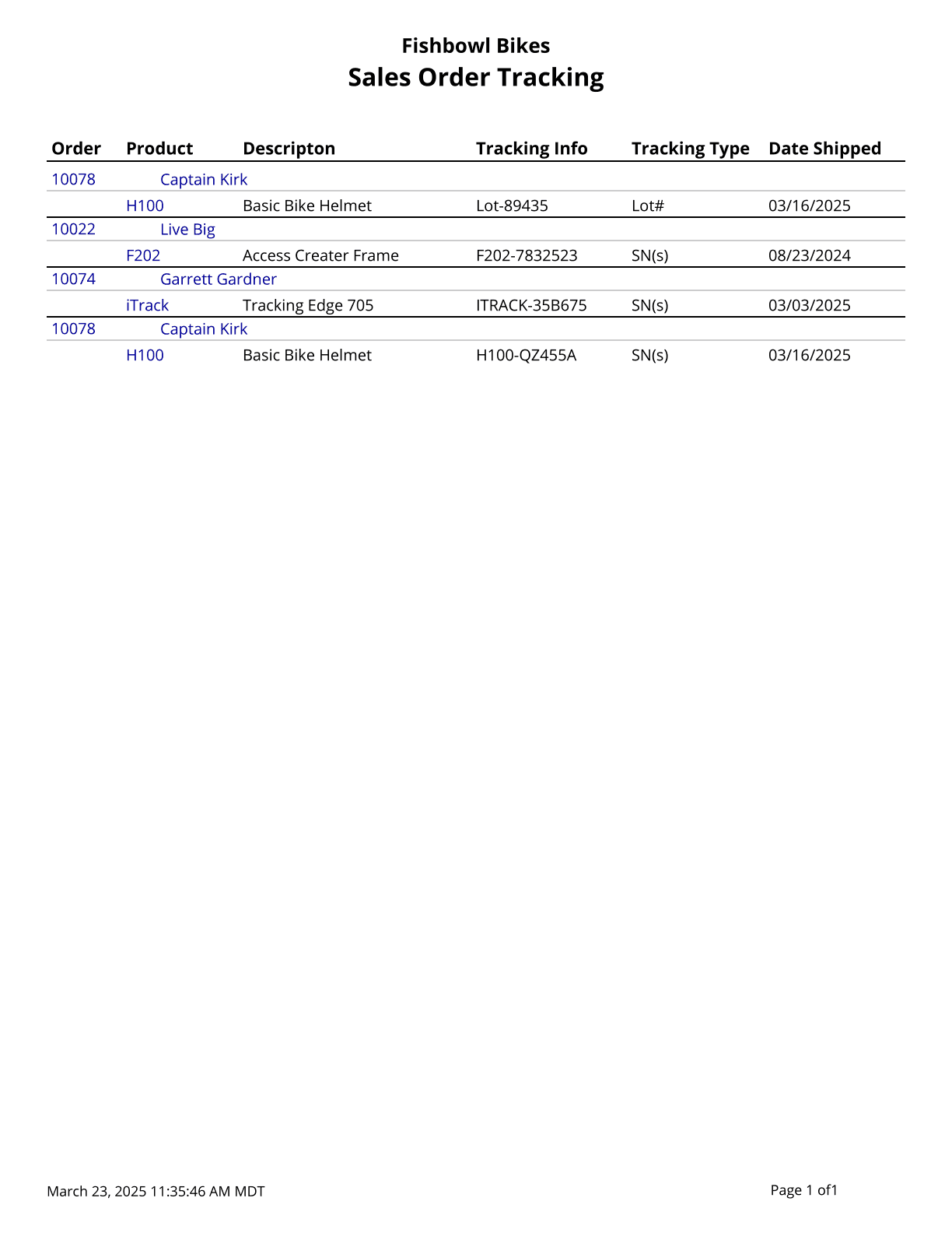 Sales Order Tracking - A list of tracking values associated with items on a sales order.![]()