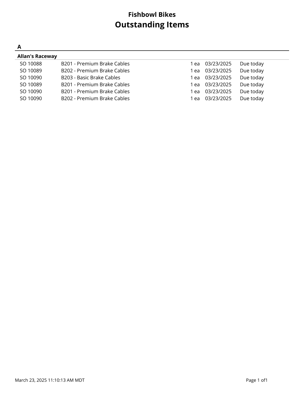 Outstanding Work Orders - Prints a list of all outstanding work orders, along with their associated sales order number and customer (if any).