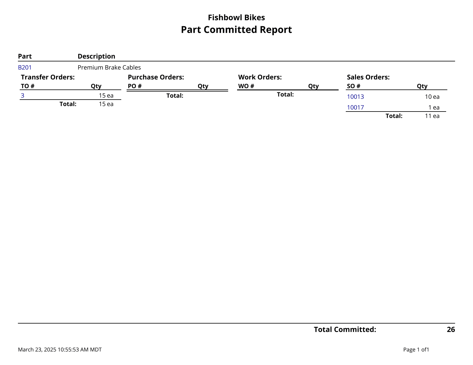 Part Committed Report - Shows where parts are committed.