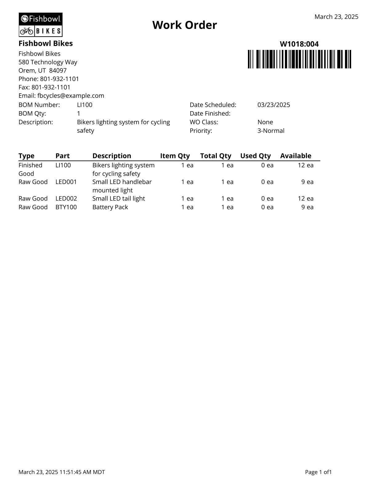 Work Order Traveler - Basic Report for Work Orders.