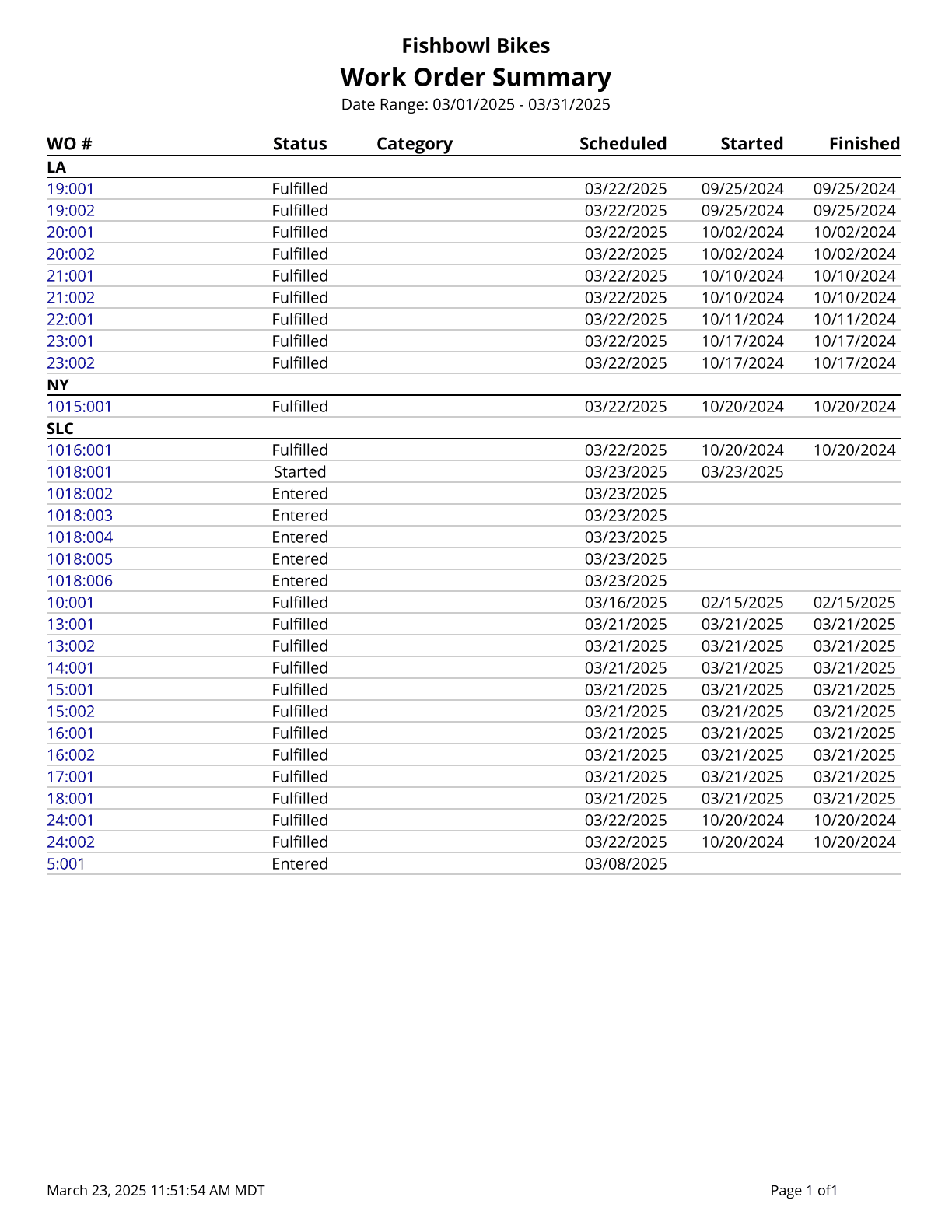 Work Order Report - Printout of Work Order Details.