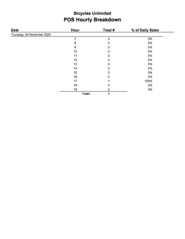POS Hourly Breakdown - Pulls all sales made with Fishbowl Checkout and shows how many sales were made per hour in a given date range. Shows a graph of the average amount of sales per hour.